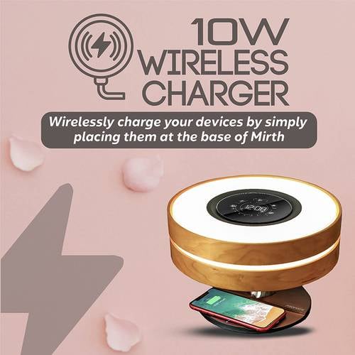 مصباح "Mirth" يتميز بتصميم معاصر رائع مع تشطيب خشبي ، ما يضيف لمسة من الأناقة لأي مكان. كما يتيح مكبر الصوت تجربة موسيقية غامرة.