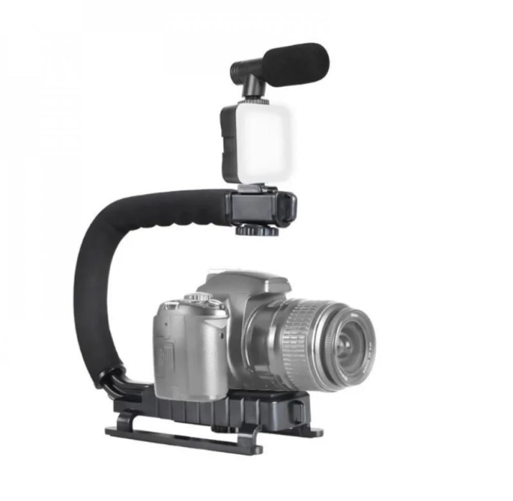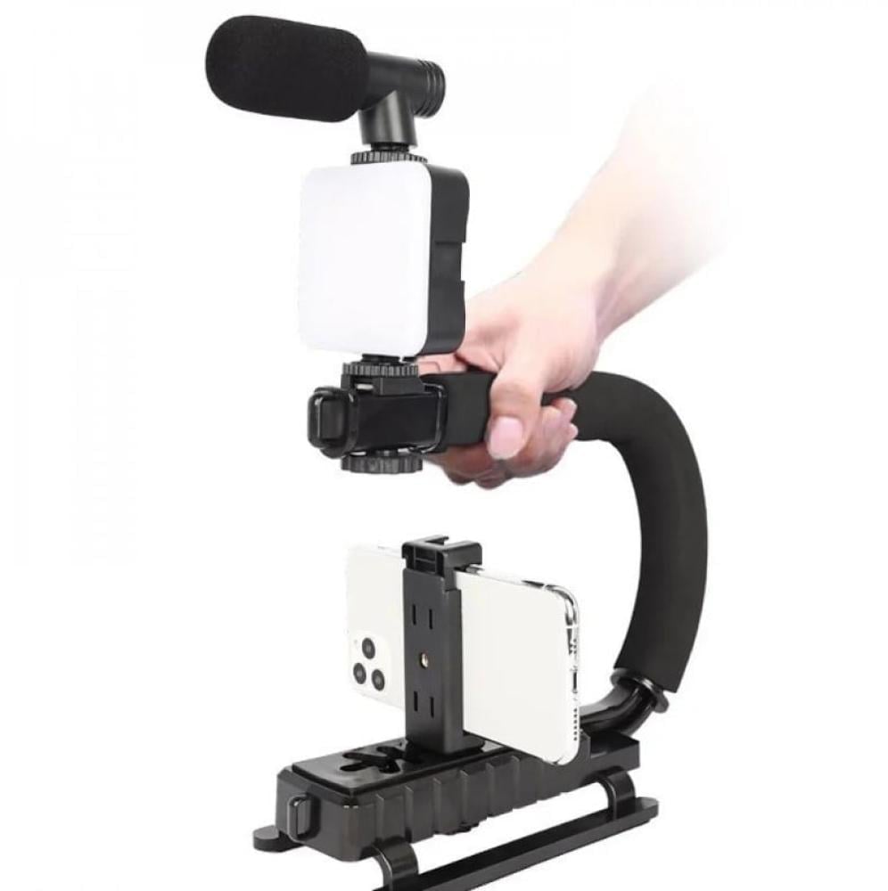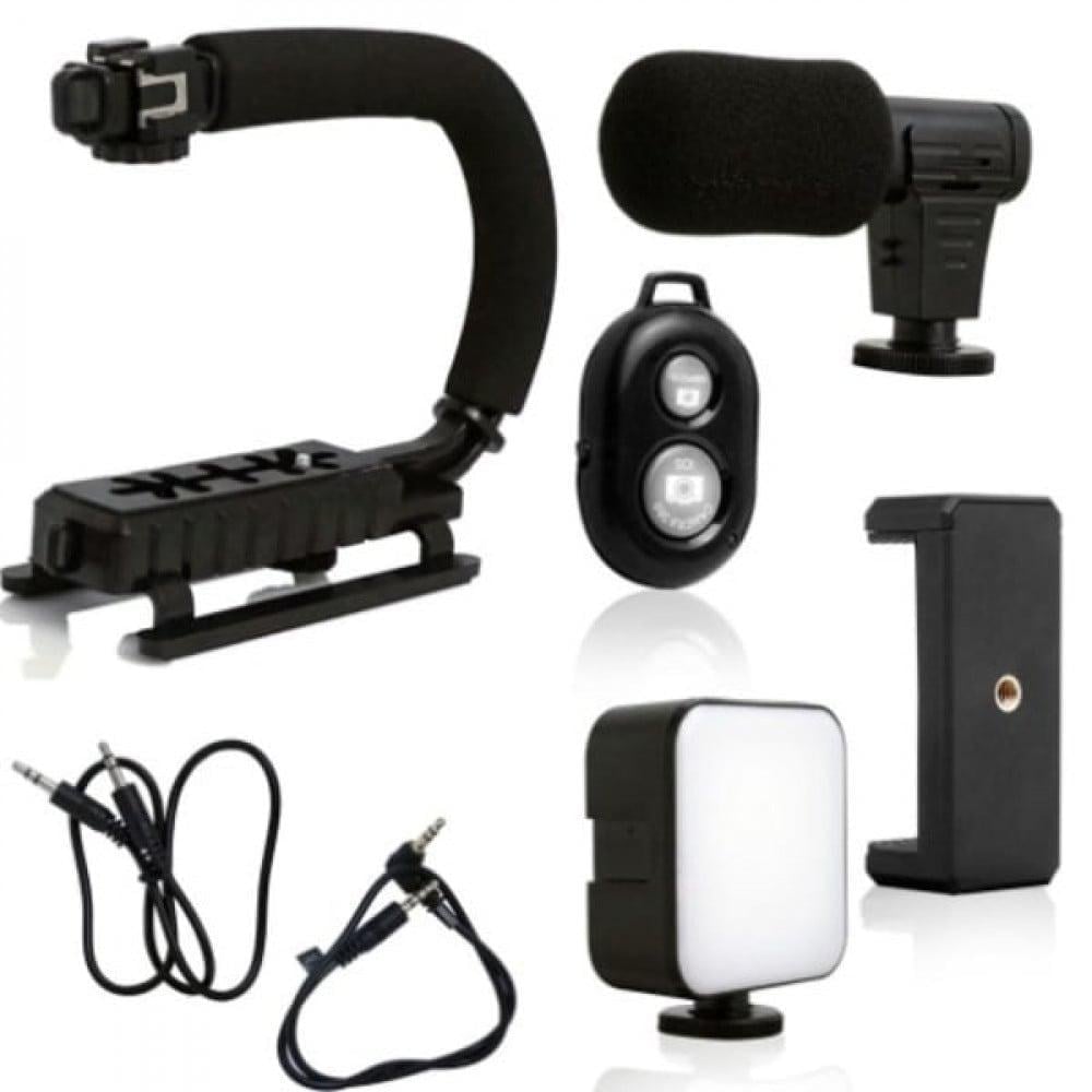 مانع اهتزاز لتصوير الفيديوهات يفيد للمصورين والمحترفين والهواة مع اضاءة LED وميكروفون مع جهاز تحكم عن بعد ، متوافق مع جميع اجهزة الجوال والكاميرات ، تصميم مريح وخفيف الوزن