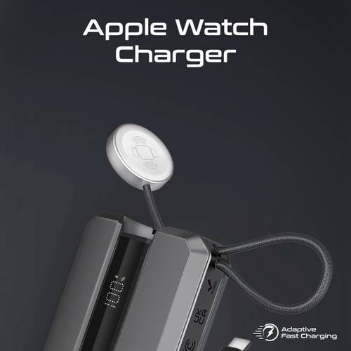 بطارية متنقلة فائقة السرعة بقدرة 10000 مللي أمبير بتصميم رائع يعكس آخر صيحات التقنية بقدرة 30 واط، مزودة بكابل USB-C وشاحن لجميع إصدارات ساعة أبل