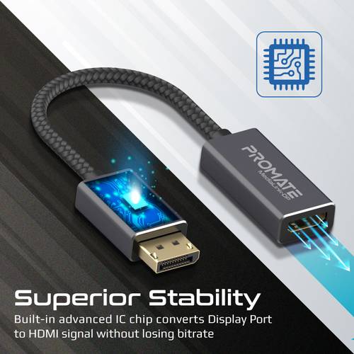 تعمل شريحة IC المتقدمة المدمجة على تحويل DisplayPort إلى إشارة HDMI دون فقدان معدل البت. يوجد أيضًا قفل بمشبك آمن على المحول ليوفر لك اتصالاً خاليًا من التداخل. تصميم قفل بالضغط يمنع فصل الجهاز المتصل عن طريق الخطأ.