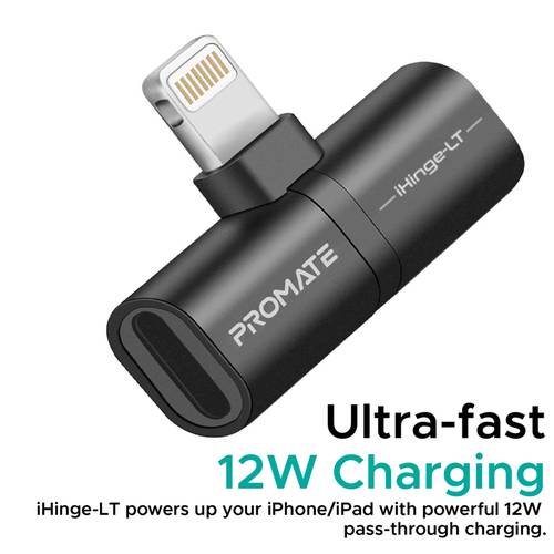 محول صوت وشحن 2 في 1 مع موصل لايتينينغ مع ميزة الشحن بقوة 12 واط وصوت عالي الجودة يصل إلى 24 بت و48 كيلو هرتز