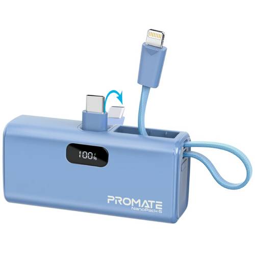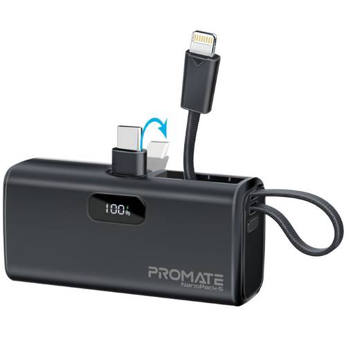 أحدث بطارية متنقلة - صغيرة جدا للشحن السريع بقدرة 5000 مللي أمبير مع موصل USB-C قابل للطي وكابل آيفون لايتينيغ توصيل طاقة بقدرة 20 واط موصل USB-C قابل للطي مع مدخل/مخرج USB-C -بروميت NanoPack-5