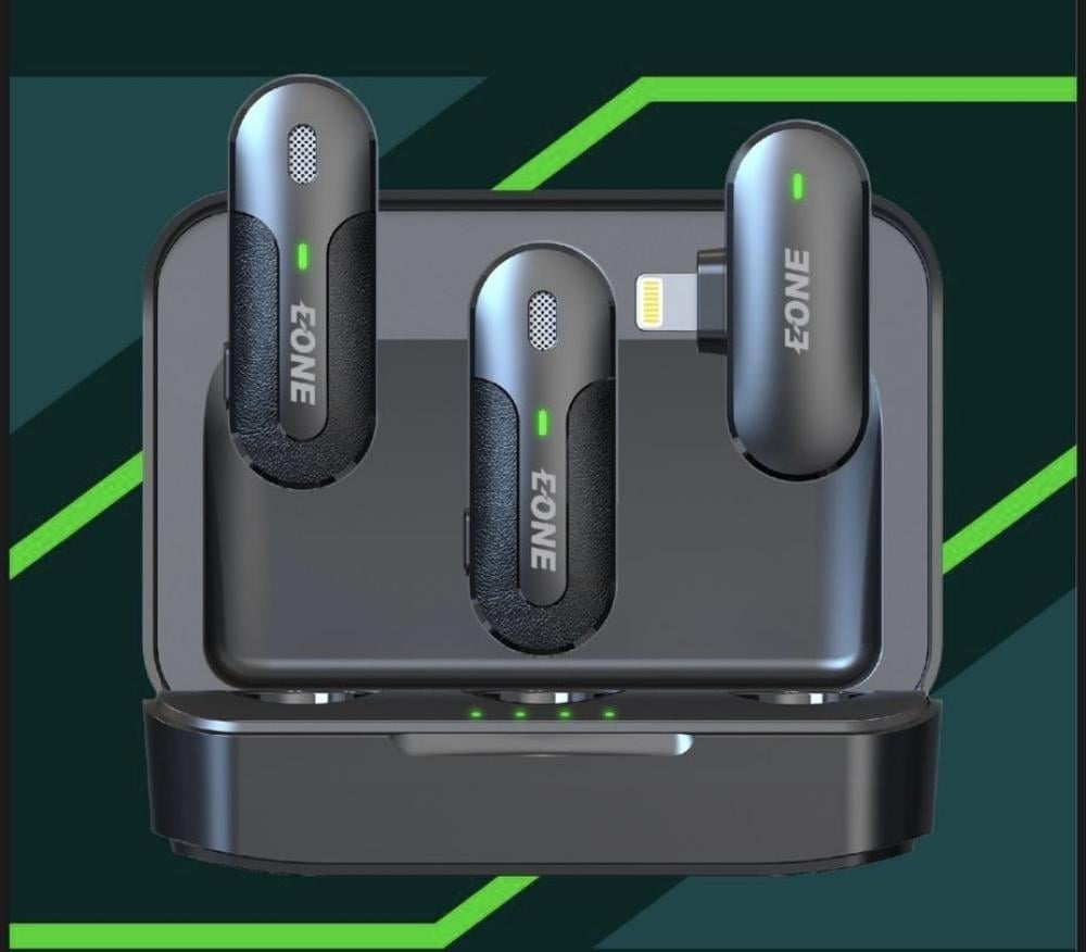 • 2 ميكروفون لاسلكي مزدوج بجودة صوت فائقة، مثالي للتسجيل، البث المباشر، والمقابلات.